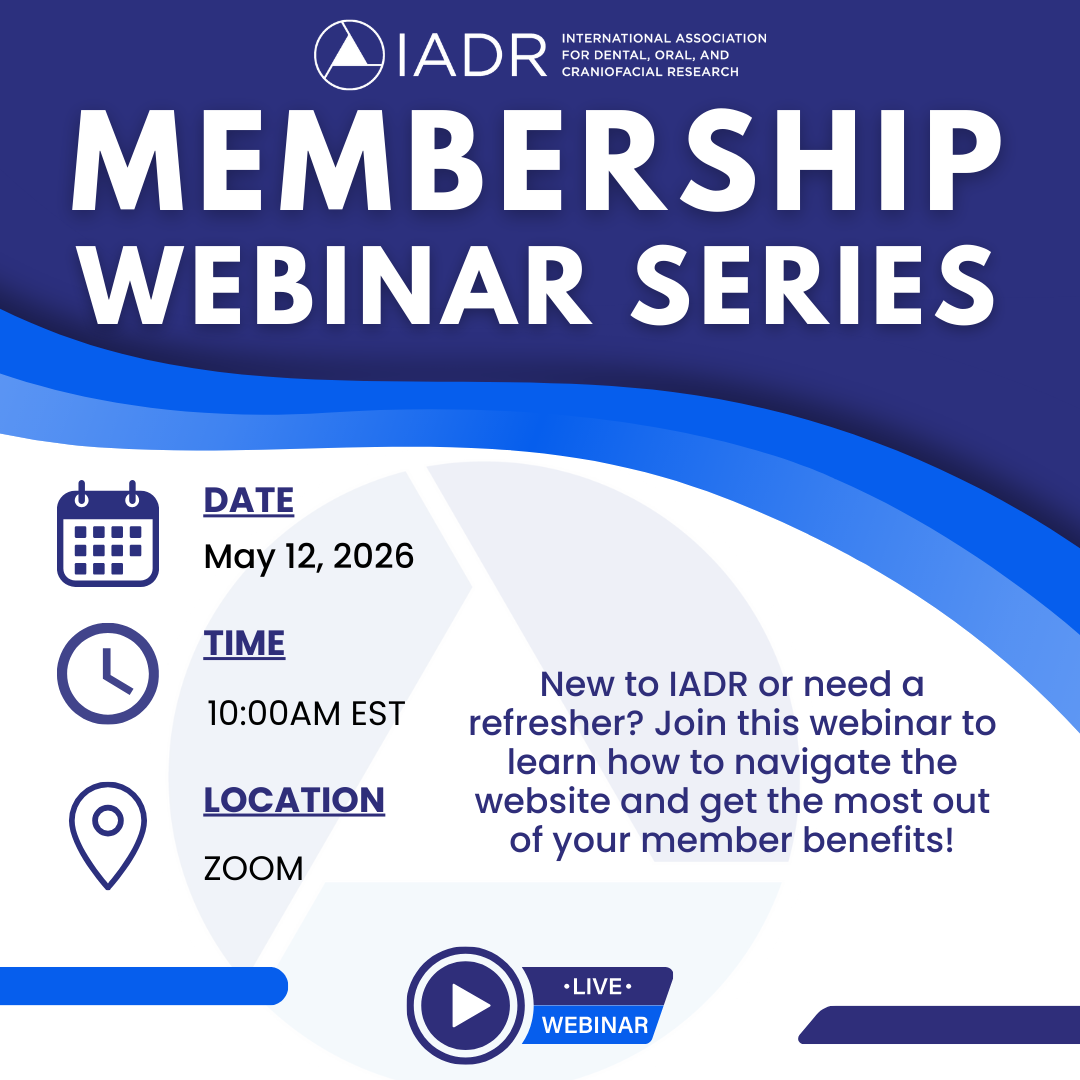 This webinar will highlight practical ways to get more involved in IADR, including volunteer opportunities within Scientific Groups/Networks and Divisions/Sections, as well as how to collaborate with Group and Network leadership to develop and submit webinar proposals.The session aims to showcase how active participation in IADR can help members and prospective members expand their professional networks within the dental, oral, and craniofacial research community—benefiting not only established professionals, but also dental students and early-career researchers.